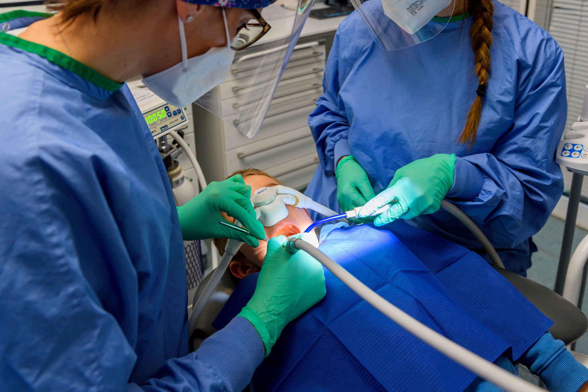 I bambini piccoli, timorosi, incapaci di stare fermi a lungo tempo o traumatizzati da una precedente esperienza odontoiatrica vengono sottoposti a sedazione cosciente: una tecnica di analgesia sedativa che prevede l’uso di una miscela di ossigeno e protossido d’azoto.